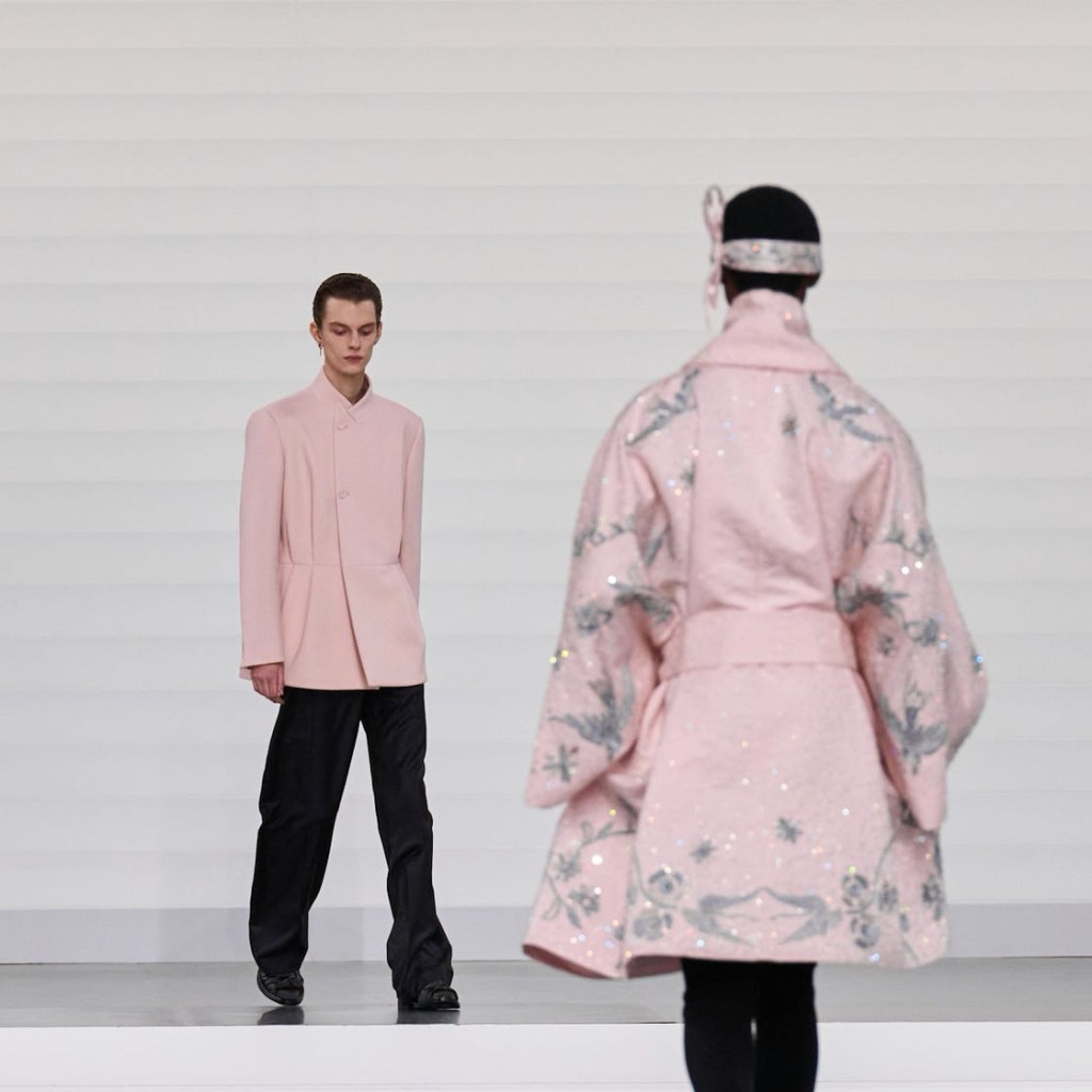 Kim Jones 在 Dior 男裝系列中,持續探索高級訂製服的可能性,並不斷將這些傳統上屬於女裝的高級工藝融入男裝設計之中。本季,他再次突破界限,推出數款媲美高級訂製服的男裝作品,讓奢華工藝不再是只能遠觀的美學,而是能夠真正融入日常穿搭的時尚表現。