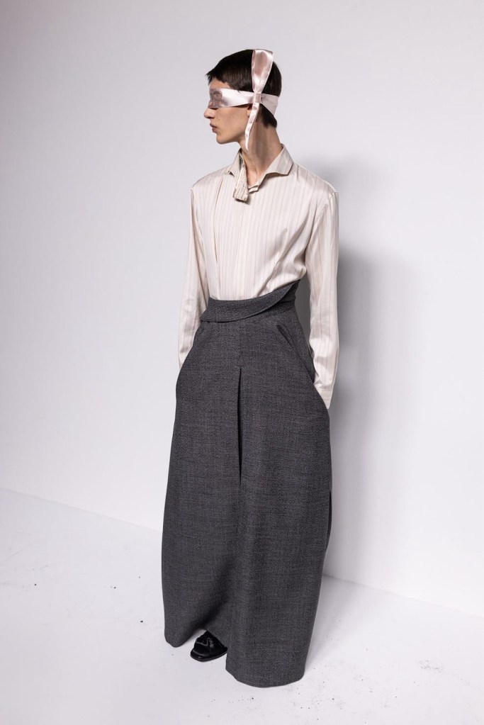 這種女裝男用的設計思維,不僅顛覆傳統性別界線,也恰好反映了當代時尚對於性別流動的全新詮釋。